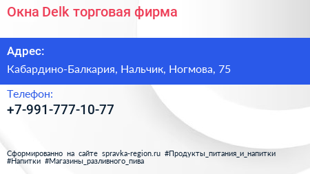 Окна Delk, торговая фирма по адресу Кабардино-Балкария, Нальчик, Ногмова, 75 в дальнейшем Организация, размещена в следующих категориях: