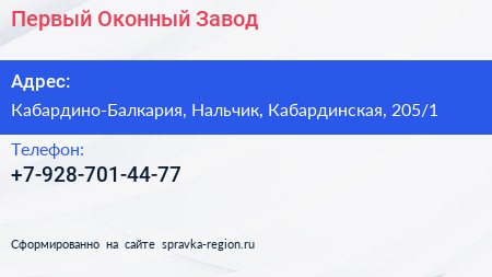 Первый Оконный Завод по адресу Кабардино-Балкария, Нальчик, Кабардинская, 205/1 в дальнейшем Организация, размещена в следующих категориях: