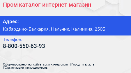 Пром каталог, интернет-магазин по адресу Кабардино-Балкария, Нальчик, Калинина, 250Б в дальнейшем Организация, размещена в следующих категориях: