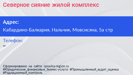 Северное сияние, жилой комплекс по адресу Кабардино-Балкария, Нальчик, Мовсисяна, 5а стр в дальнейшем Организация, размещена в следующих категориях: