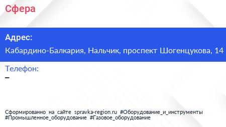 Сфера по адресу Кабардино-Балкария, Нальчик, проспект Шогенцукова, 14 в дальнейшем Организация, размещена в следующих категориях: