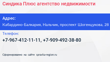 Синдика Плюс, агентство недвижимости по адресу Кабардино-Балкария, Нальчик, проспект Шогенцукова, 28 в дальнейшем Организация, размещена в следующих категориях: