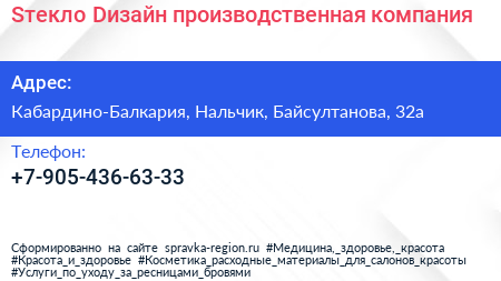 Sтекло-Dизайн, производственная компания по адресу Кабардино-Балкария, Нальчик, Байсултанова, 32а в дальнейшем Организация, размещена в следующих категориях: