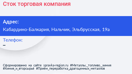 Сток, торговая компания по адресу Кабардино-Балкария, Нальчик, Эльбрусская, 19а в дальнейшем Организация, размещена в следующих категориях: