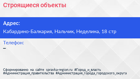 Строящиеся объекты по адресу Кабардино-Балкария, Нальчик, Неделина, 18 стр в дальнейшем Организация, размещена в следующих категориях: