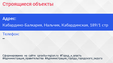Строящиеся объекты по адресу Кабардино-Балкария, Нальчик, Кабардинская, 189/1 стр в дальнейшем Организация, размещена в следующих категориях: