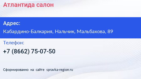 Атлантида, салон по адресу Кабардино-Балкария, Нальчик, Мальбахова, 89 в дальнейшем Организация, размещена в следующих категориях: