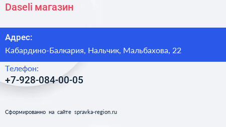 Daseli, магазин по адресу Кабардино-Балкария, Нальчик, Мальбахова, 22 в дальнейшем Организация, размещена в следующих категориях: