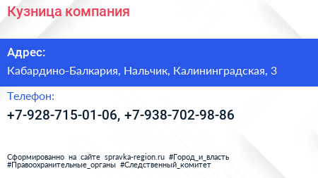 Адрес: Кабардино-Балкария, Нальчик, Кабардинская, 147