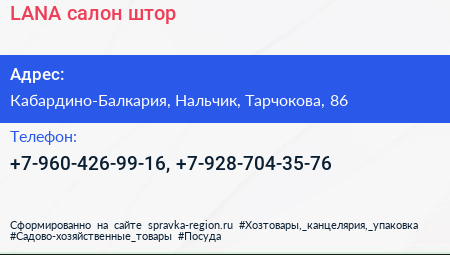LANA, салон штор по адресу Кабардино-Балкария, Нальчик, Тарчокова, 86 в дальнейшем Организация, размещена в следующих категориях: