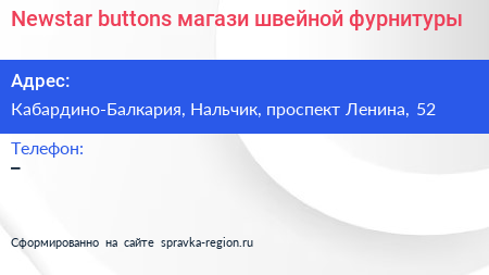 Newstar buttons, магази швейной фурнитуры по адресу Кабардино-Балкария, Нальчик, проспект Ленина, 52 в дальнейшем Организация, размещена в следующих категориях: