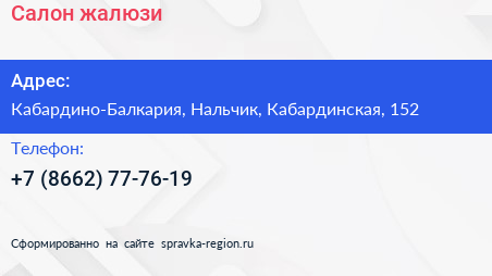 Салон жалюзи по адресу Кабардино-Балкария, Нальчик, Кабардинская, 152 в дальнейшем Организация, размещена в следующих категориях: