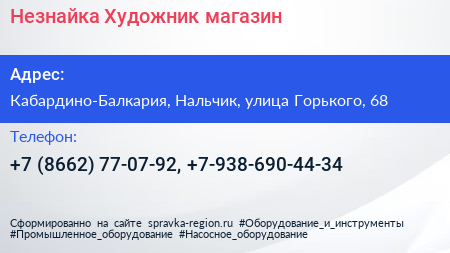 Незнайка-Художник, магазин по адресу Кабардино-Балкария, Нальчик, улица Горького, 68 в дальнейшем Организация, размещена в следующих категориях: