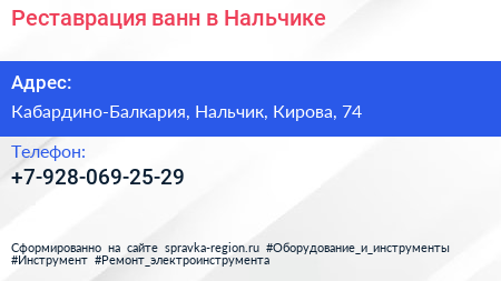 Реставрация ванн в Нальчике по адресу Кабардино-Балкария, Нальчик, Кирова, 74 в дальнейшем Организация, размещена в следующих категориях: