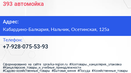 393, автомойка по адресу Кабардино-Балкария, Нальчик, Осетинская, 125а в дальнейшем Организация, размещена в следующих категориях: