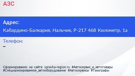 АЗС по адресу Кабардино-Балкария, Нальчик, Р-217 468 Километр, 1а в дальнейшем Организация, размещена в следующих категориях: