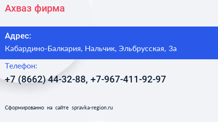 Ахваз, фирма по адресу Кабардино-Балкария, Нальчик, Эльбрусская, 3а в дальнейшем Организация, размещена в следующих категориях: