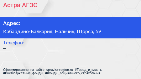 Астра, АГЗС по адресу Кабардино-Балкария, Нальчик, Щорса, 59 в дальнейшем Организация, размещена в следующих категориях: