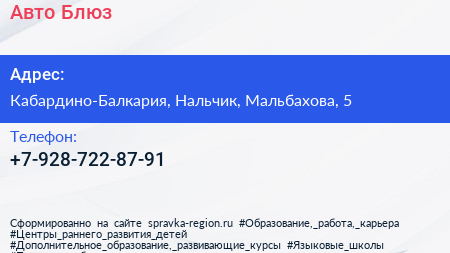 Авто-Блюз по адресу Кабардино-Балкария, Нальчик, Мальбахова, 5 в дальнейшем Организация, размещена в следующих категориях: