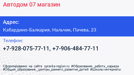 Автодом 07, магазин по адресу Кабардино-Балкария, Нальчик, Пачева, 23 в дальнейшем Организация, размещена в следующих категориях: