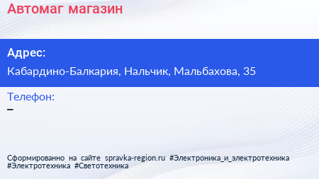 Автомаг, магазин по адресу Кабардино-Балкария, Нальчик, Мальбахова, 35 в дальнейшем Организация, размещена в следующих категориях: