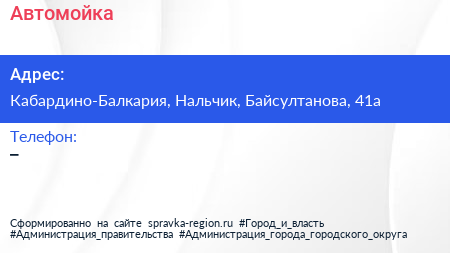 Автомойка по адресу Кабардино-Балкария, Нальчик, Байсултанова, 41а в дальнейшем Организация, размещена в следующих категориях: