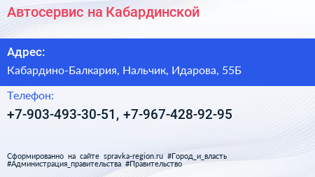 Автосервис на Кабардинской по адресу Кабардино-Балкария, Нальчик, Идарова, 55Б в дальнейшем Организация, размещена в следующих категориях: