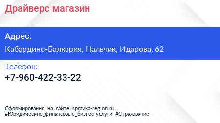 Драйверс, магазин по адресу Кабардино-Балкария, Нальчик, Идарова, 62 в дальнейшем Организация, размещена в следующих категориях: