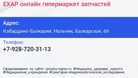 EXAP, онлайн-гипермаркет запчастей по адресу Кабардино-Балкария, Нальчик, Балкарская, 66 в дальнейшем Организация, размещена в следующих категориях: