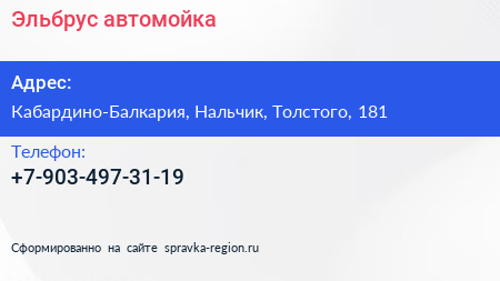 Эльбрус, автомойка по адресу Кабардино-Балкария, Нальчик, Толстого, 181 в дальнейшем Организация, размещена в следующих категориях: