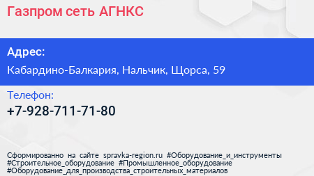 Газпром, сеть АГНКС по адресу Кабардино-Балкария, Нальчик, Щорса, 59 в дальнейшем Организация, размещена в следующих категориях: