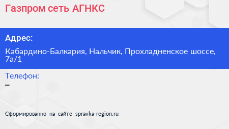 Газпром, сеть АГНКС по адресу Кабардино-Балкария, Нальчик, Прохладненское шоссе, 7а/1 в дальнейшем Организация, размещена в следующих категориях: