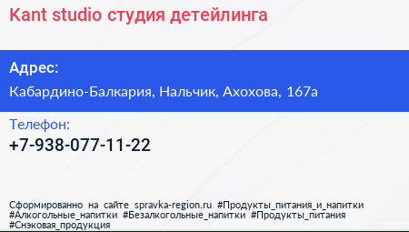 Kant studio, студия детейлинга по адресу Кабардино-Балкария, Нальчик, Ахохова, 167а в дальнейшем Организация, размещена в следующих категориях: