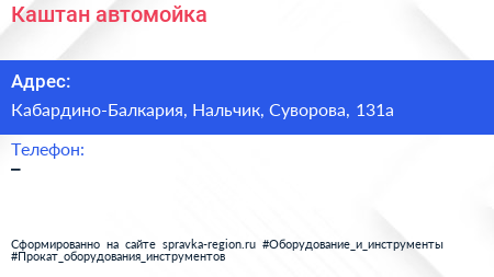 Каштан, автомойка по адресу Кабардино-Балкария, Нальчик, Суворова, 131а в дальнейшем Организация, размещена в следующих категориях: