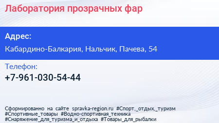 Лаборатория прозрачных фар по адресу Кабардино-Балкария, Нальчик, Пачева, 54 в дальнейшем Организация, размещена в следующих категориях: