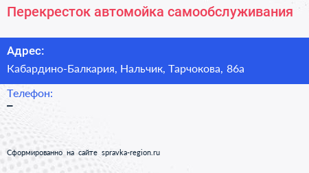 Перекресток, автомойка самообслуживания по адресу Кабардино-Балкария, Нальчик, Тарчокова, 86а в дальнейшем Организация, размещена в следующих категориях: