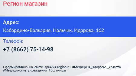 Регион, магазин по адресу Кабардино-Балкария, Нальчик, Идарова, 162 в дальнейшем Организация, размещена в следующих категориях: