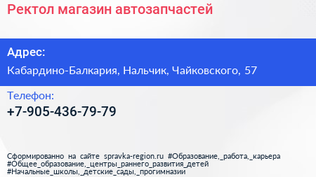 Ректол, магазин автозапчастей по адресу Кабардино-Балкария, Нальчик, Чайковского, 57 в дальнейшем Организация, размещена в следующих категориях:
