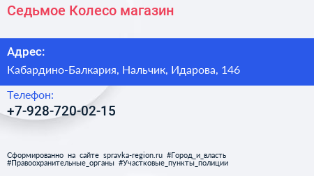 Седьмое Колесо, магазин по адресу Кабардино-Балкария, Нальчик, Идарова, 146 в дальнейшем Организация, размещена в следующих категориях: