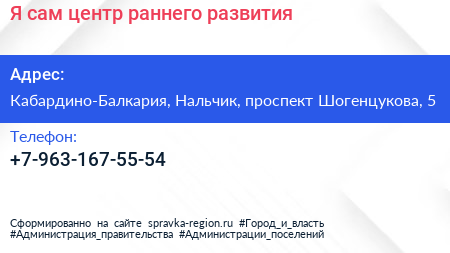 Я сам, центр раннего развития по адресу Кабардино-Балкария, Нальчик, проспект Шогенцукова, 5 в дальнейшем Организация, размещена в следующих категориях: