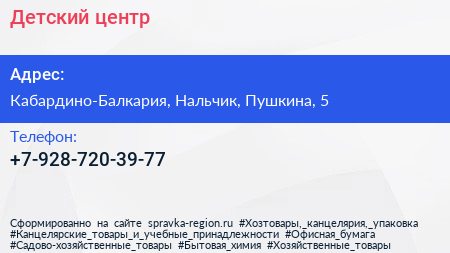 Детский центр по адресу Кабардино-Балкария, Нальчик, Пушкина, 5 в дальнейшем Организация, размещена в следующих категориях: