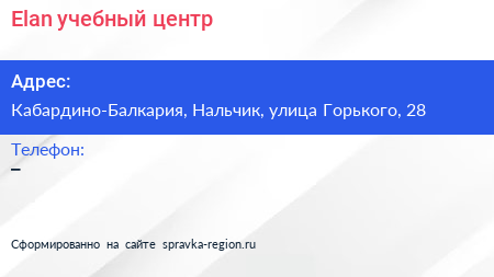 Elan, учебный центр по адресу Кабардино-Балкария, Нальчик, улица Горького, 28 в дальнейшем Организация, размещена в следующих категориях: