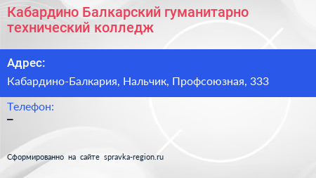 Кабардино-Балкарский гуманитарно-технический колледж по адресу Кабардино-Балкария, Нальчик, Профсоюзная, 333 в дальнейшем Организация, размещена в следующих категориях: