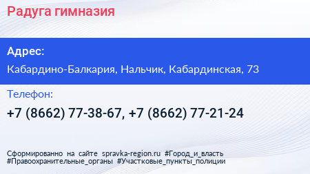 Радуга, гимназия по адресу Кабардино-Балкария, Нальчик, Кабардинская, 73 в дальнейшем Организация, размещена в следующих категориях: