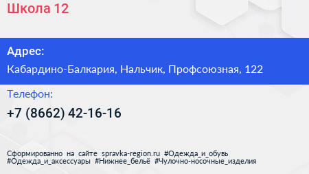 Школа №12 по адресу Кабардино-Балкария, Нальчик, Профсоюзная, 122 в дальнейшем Организация, размещена в следующих категориях: