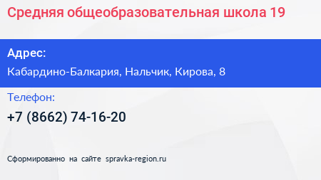 Средняя общеобразовательная школа №19 по адресу Кабардино-Балкария, Нальчик, Кирова, 8 в дальнейшем Организация, размещена в следующих категориях: