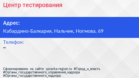 Центр тестирования по адресу Кабардино-Балкария, Нальчик, Ногмова, 69 в дальнейшем Организация, размещена в следующих категориях: