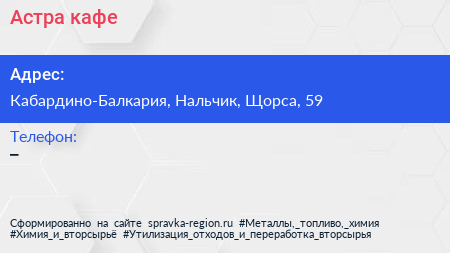 Астра, кафе по адресу Кабардино-Балкария, Нальчик, Щорса, 59 в дальнейшем Организация, размещена в следующих категориях: