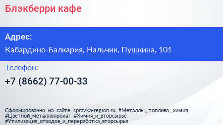 Блэкберри, кафе по адресу Кабардино-Балкария, Нальчик, Пушкина, 101 в дальнейшем Организация, размещена в следующих категориях: