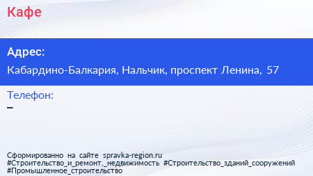 Адрес: Кабардино-Балкария, Нальчик, Кешокова, 57